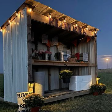 Come visit the farmstand! Built in 2024, the Farmstand has a fresh assortment of flower bouquets, garden produce, eggs, and even some baked goods. The Farmstand is a convenient way to pick up the freshest goods on your schedule. Watch our facebook and instagram for when we're open. The weather makes a big difference for the days we stock the farmstand so be sure to check before venturing out.